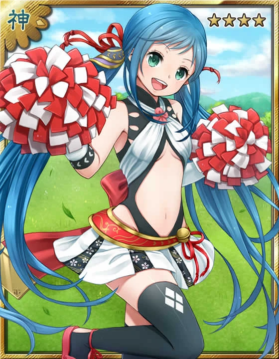 The god of sports promotion. She follows various sports, but spends most of her time helping children. At schools' sports days, she volunteers as a cheerleader, leading the crowd with her cheers while dressed in her cheerleader uniform. Adult events are a different matter, however. She won't accept any old offer to provide her pro cheerleading abilities at events.